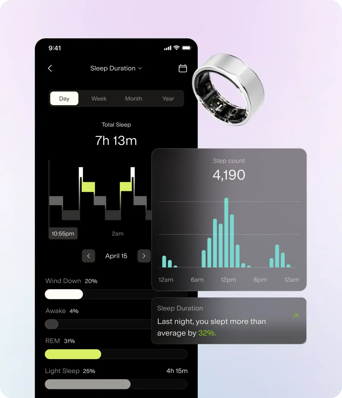 Track your everyday biometrics with our smart ring. It’s unobtrusive and easy to fit into your lifestyle, while monitoring vital signs such as heart rate variability, sleep patterns, and activity levels, offering a holistic view of how you’re doing today.